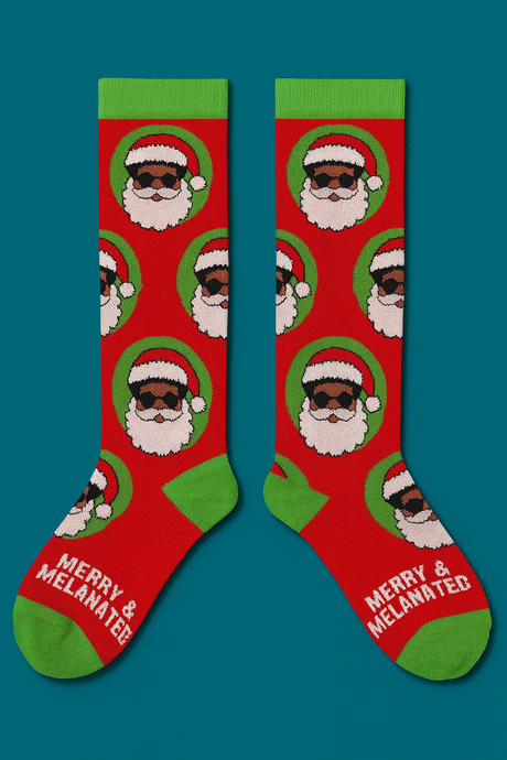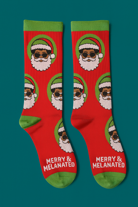 (PRE-ORDER) 🎅🏾 Merry & Melanated • Black Santa Crew Socks